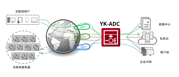 今年会通明湖应用交付控制器提供链路负载均衡技术(LLB)和全局负载均衡技术(GSLB)分别实现出向流量(Outbound)和入向流量(Inbound)的统一管理。