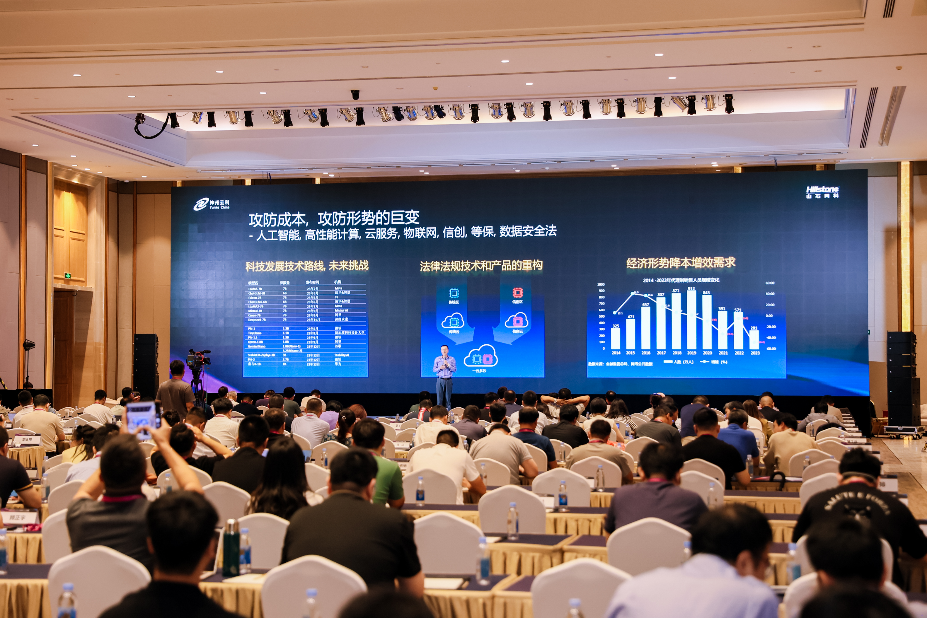 在会上吴静涛就当前面临的情况:外企退出,人工智能等新科技的引入,从如何设计全新的安全架构,应对信创的国产化策略;如何解决性能和稳定性,同时还要保证低成本的降本增效等3个方面进行了阐述: